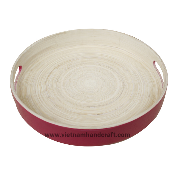 Product name: Handmade spun bamboo cocktail tray. Inside in natural, outside in red