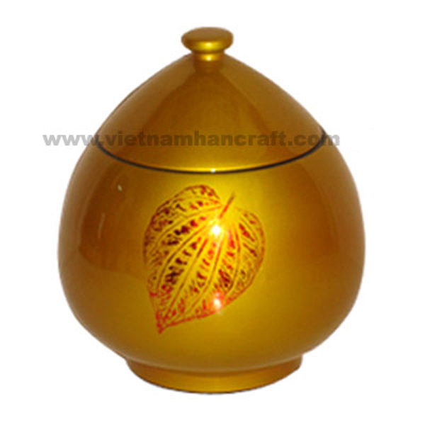 Product name: Gold lacquered wood cookie jar with hand-painted leaf